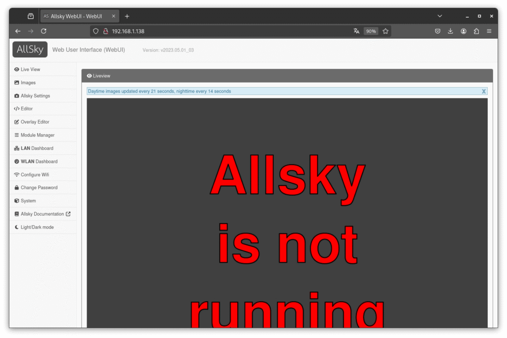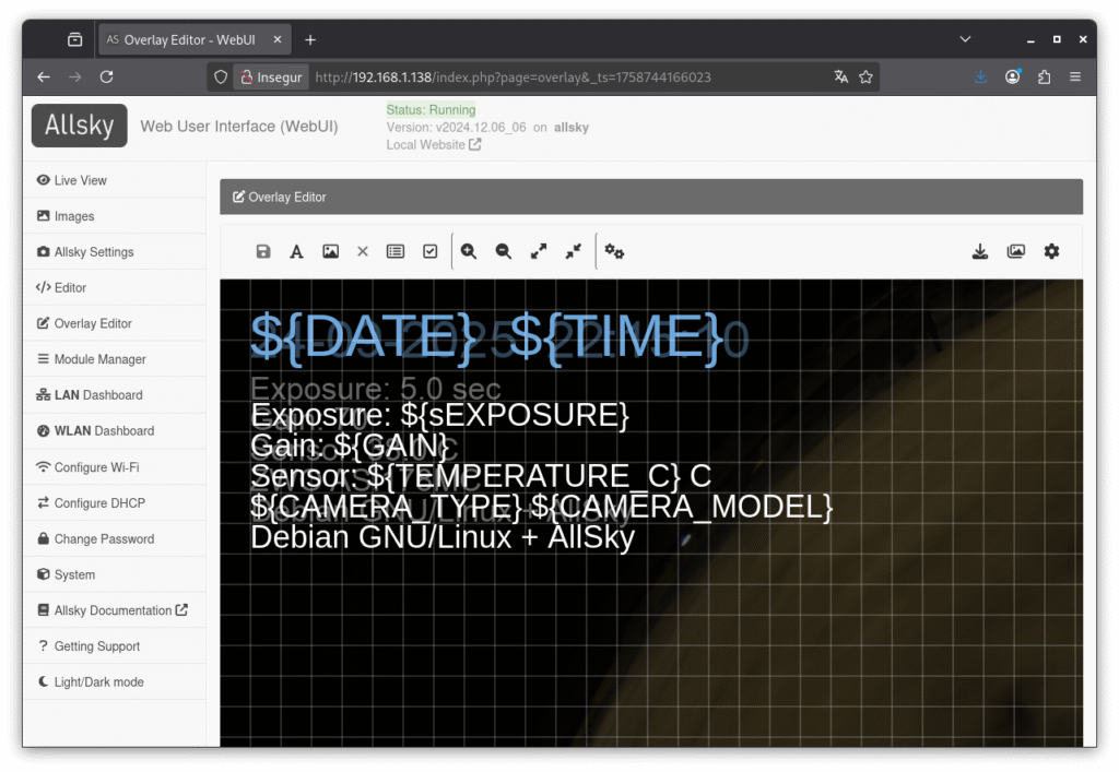 Doncs bé, aprofitant que estic d’aniversari, actualitzaré la càmera AllSky casolana a l’última versió. Fins ara tenia la versió 2024.05.01_03, encara no havia actualitzat el programari per allò de «si funciona, no toques res» però crec que després de dos anys ja està bé actualitzar el programari que li dona servei a la Raspberry Pi 4.