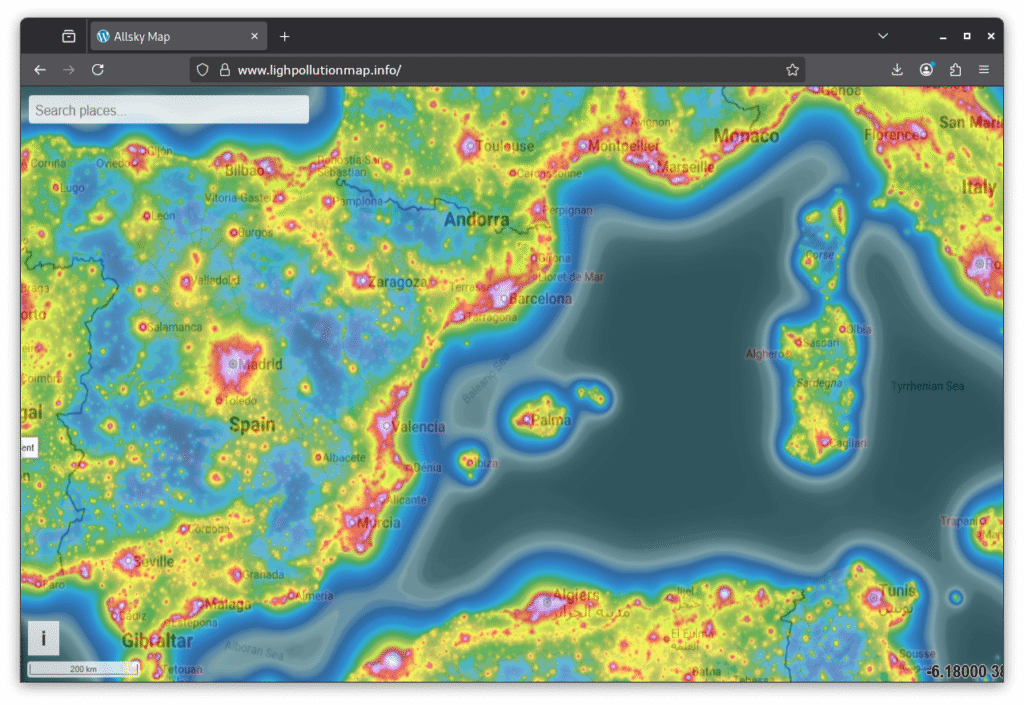 Si vols saber la qualitat del teu cel o de qualsevol altra regió, pots visitar el mapa de https://www.lightpollutionmap.info.