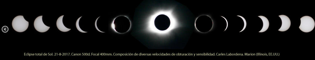Lo importante ahora es: durante la totalidad deberemos quitarnos las gafas protectoras o no veremos nada. La totalidad se observa a ojo desnudo (o con prismáticos, telescopio.. pero sin filtro). Y dura muy poco. Si nos entretenemos en intentar hacer fotos no la vamos a vivir. Olvidaros de cámaras, móviles… (si queréis hacer foto, haremos más adelante algunos artículos explicando cosas al respecto) y vivid el fenómeno.