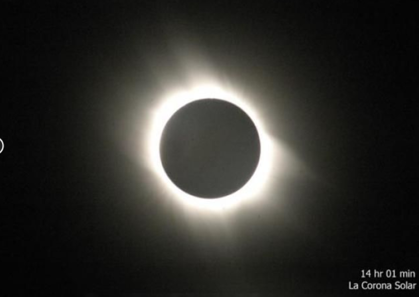 Recrearos en la sensación del ambiente, intentad observar la corona solar, la atmósfera externa del Sol. A simple vista se percibe como un halo blanco plateado que rodea el círculo negro de la Luna. No es uniforme sino que presenta estructuras finas, filamentos y extensiones irregulares que pueden alargarse mucho más en algunas direcciones.
